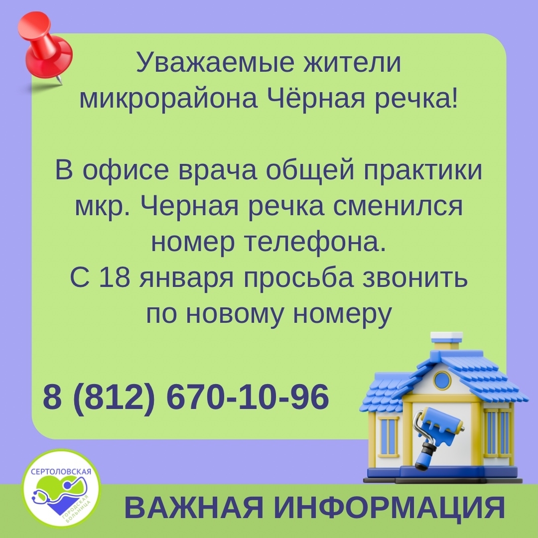В офисе врача общей практики мкр. Черная речка сменился номер телефона.